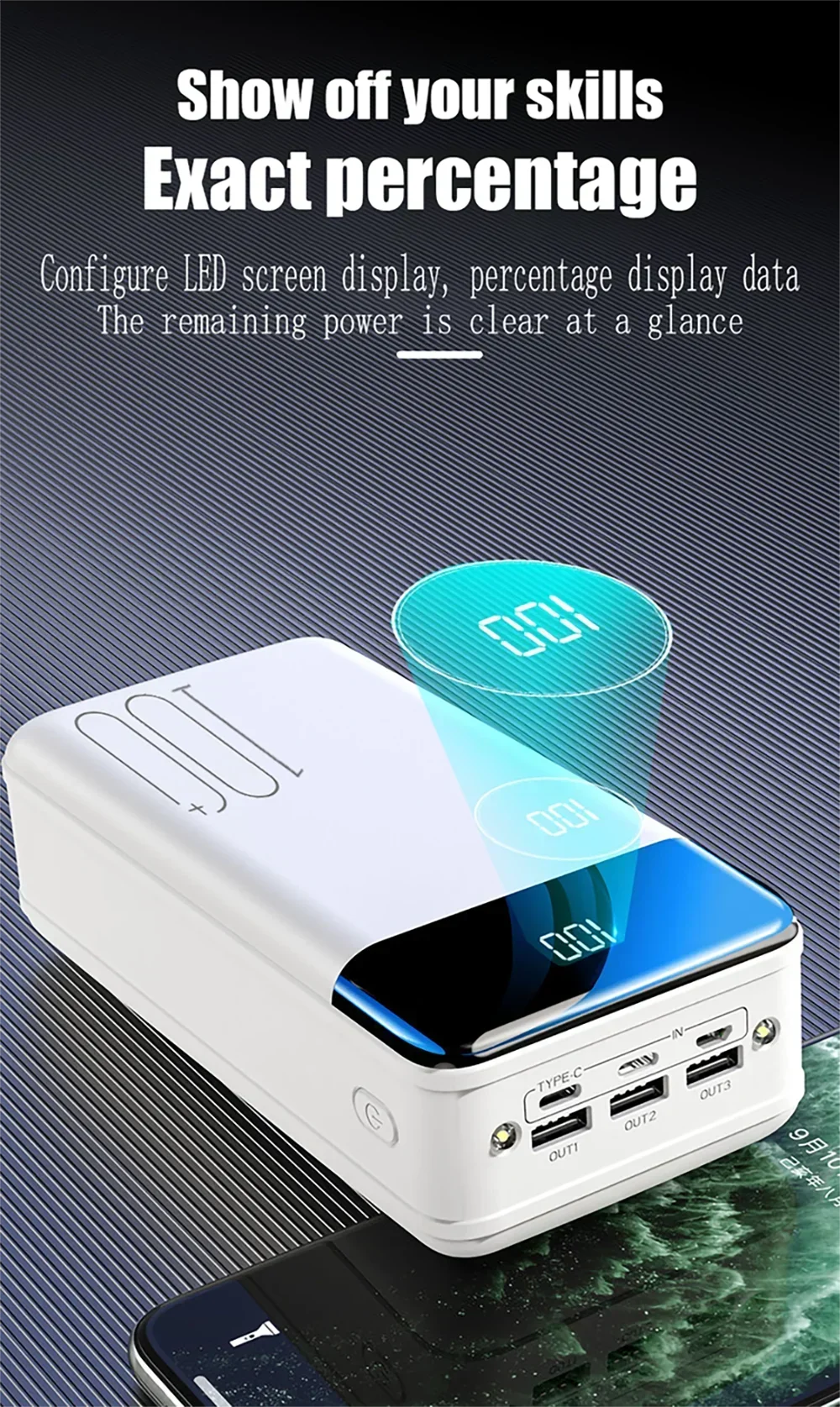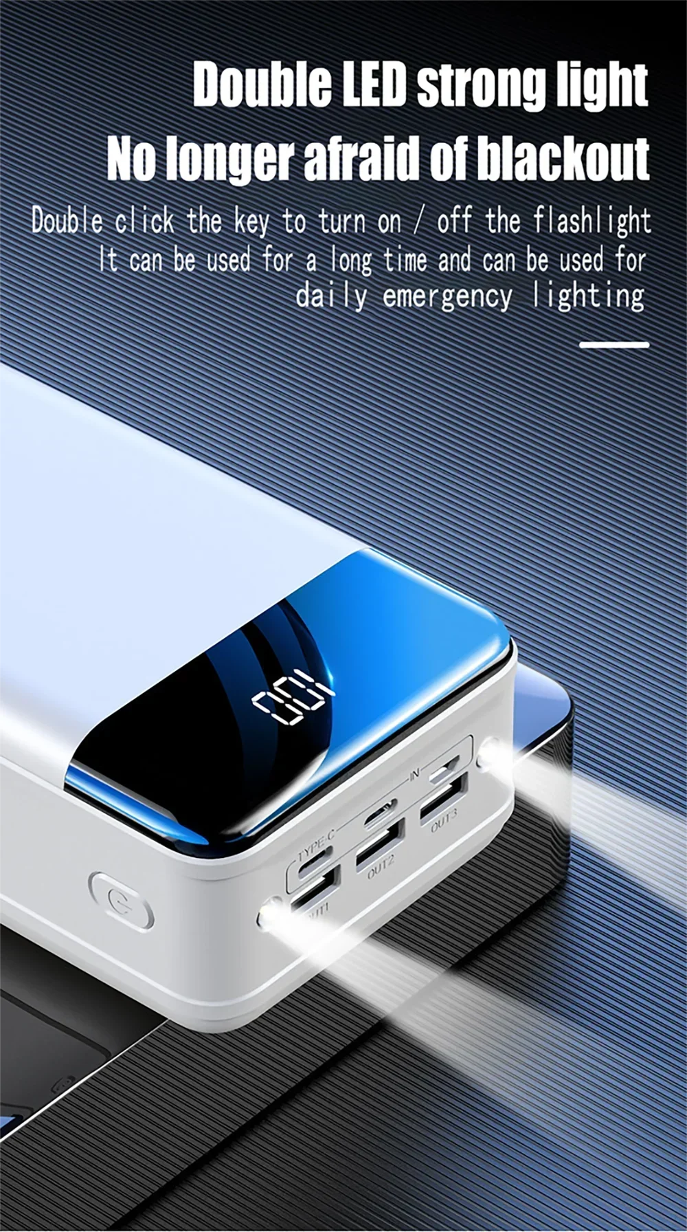 Additional functions: multi-U output, LED flashlight, two-way fast charging. Power digital display.
